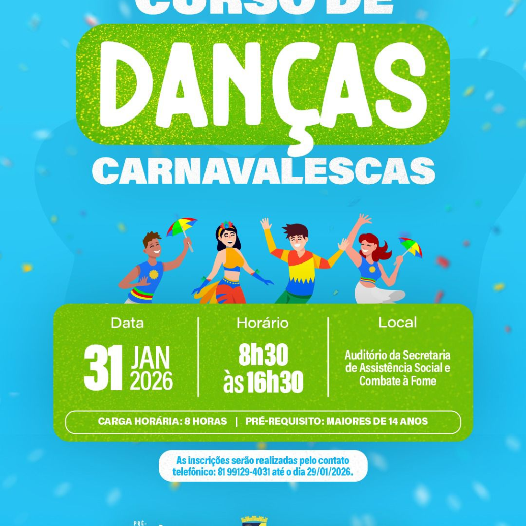 A cidade de Caruaru recebe, neste mês de janeiro, uma oportunidade de qualificação voltada para a cultura popular. Estão abertas as inscrições para o Curso de Danças Carnavalescas, iniciativa da Secretaria de Desenvolvimento Econômico, Turismo, Tecnologia e Economia Criativa (Sedetec) em parceria com a Secretaria de Assistência Social e Combate à Fome (SAS), dentro do Programa Profissionaliza Mais Caruaru.