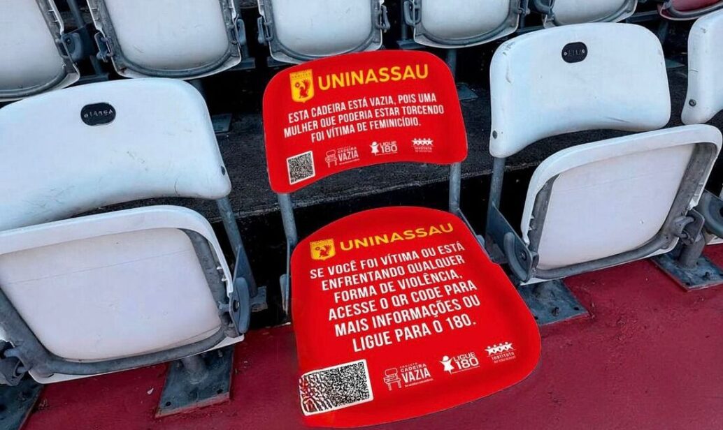 Outra ação prevista é a instalação de um banco gigante na cor vermelha na área do estádio. O objeto, símbolo do movimento, busca chamar a atenção de torcedores e visitantes para a gravidade da violência de gênero e estimular a reflexão sobre o tema.