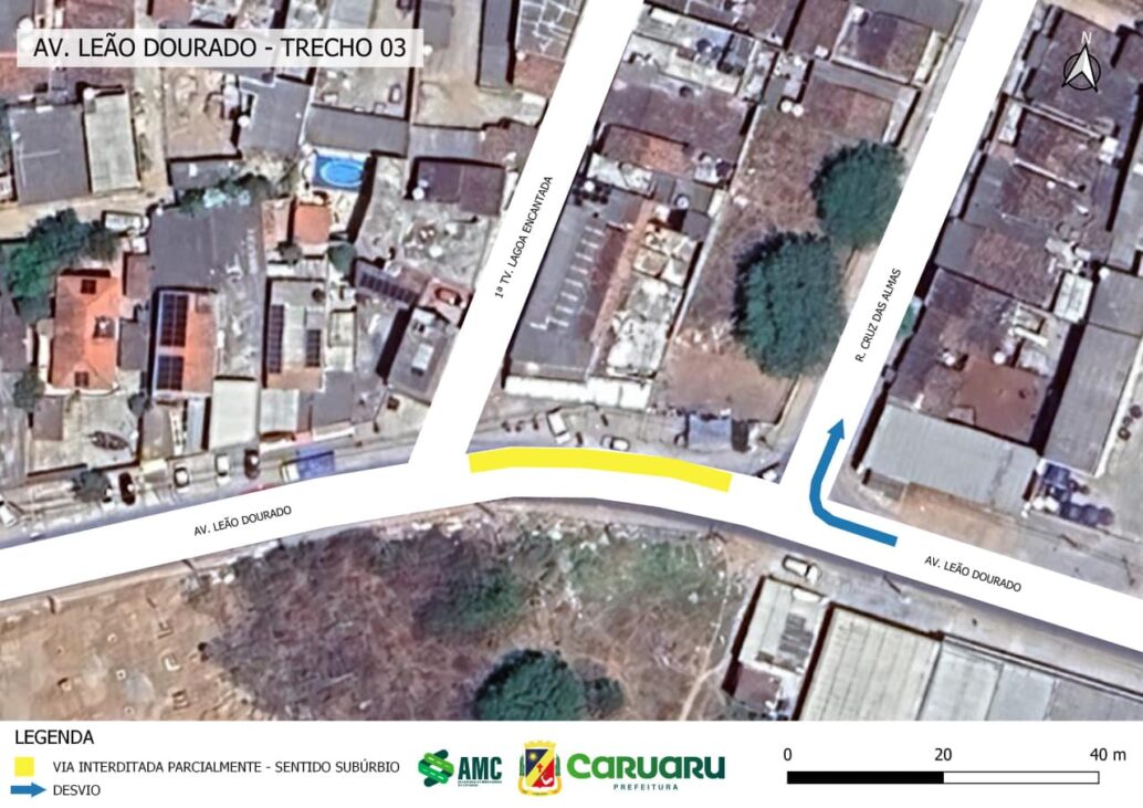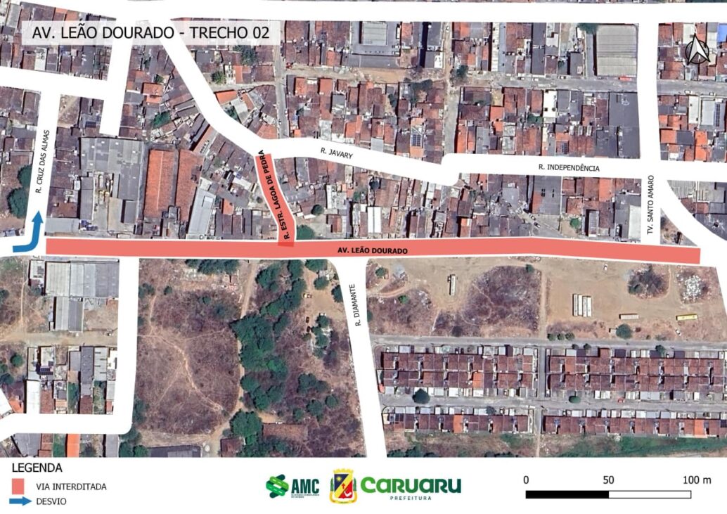 No trecho 1, a interdição atinge um dos primeiros pontos da avenida, obrigando os condutores a saírem da Leão Dourado e utilizarem as ruas Cristo Redentor e Independência como rota alternativa, retornando à via principal após o perímetro em obras.