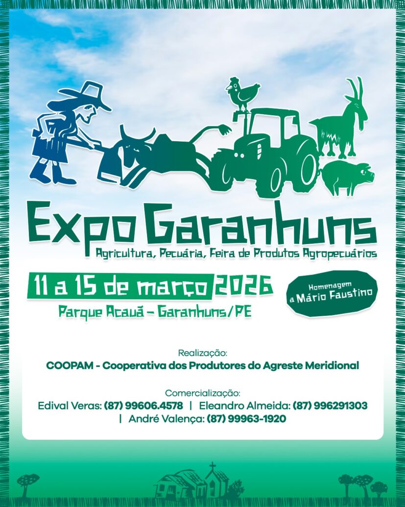 O Parque Acauã, em Garanhuns, será novamente o ponto de encontro de produtores, investidores e especialistas do campo durante a ExpoGaranhuns, marcada para acontecer de 11 a 15 de março. O evento se consolida como uma das principais vitrines do agronegócio no Agreste Pernambucano, reunindo exposições de animais, comercialização de insumos, tecnologia rural e uma ampla programação técnica.