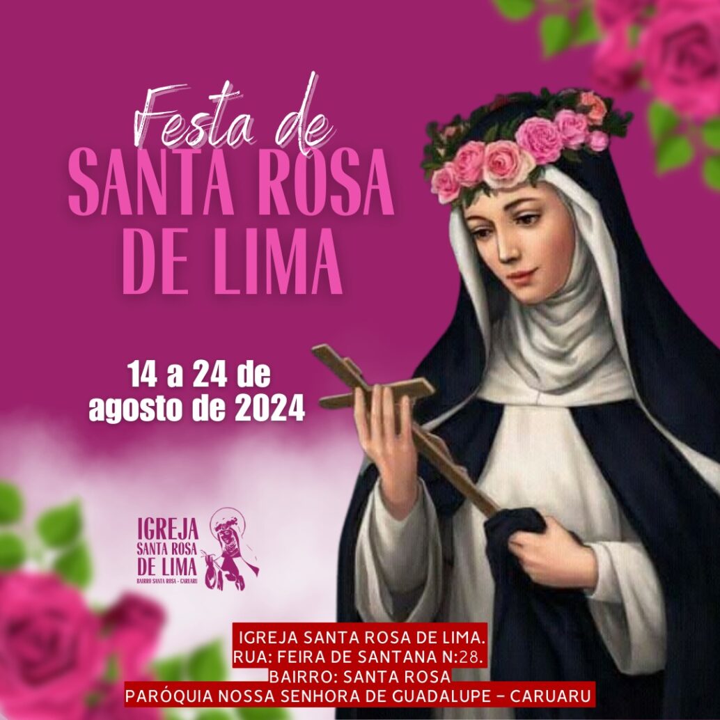 A partir desta quarta-feira (14) acontece em Caruaru a festa da padroeira Santa Rosa de Lima, no bairro Santa Rosa. O evento segue até o dia 24 de agosto, com uma programação especial que inclui missas, novenas, procissões e momentos de oração. Quermesses também serão realizadas logo após as missas.