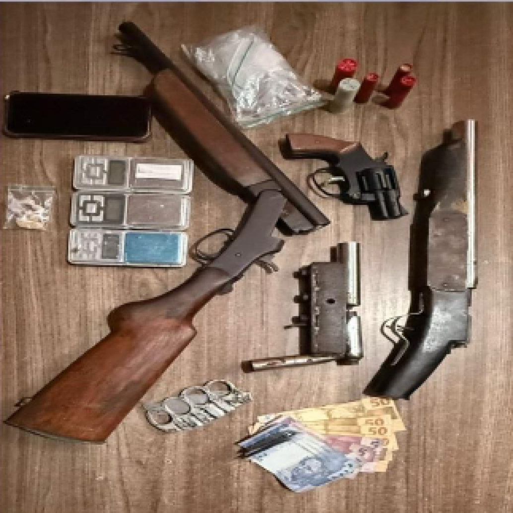 Durante a operação, foram apreendidas armas de fogo, munições, balanças de precisão, celulares, dinheiro e materiais para embalagem de drogas. Todo o material e os envolvidos foram encaminhados à Delegacia de Plantão do município para as providências legais.