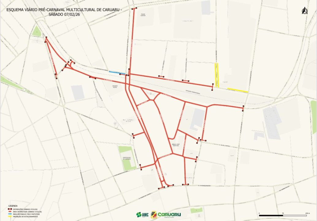 A Autarquia de Mobilidade de Caruaru (AMC) informa que fará interdições temporárias no centro da cidade devido ao Pré-Carnaval Multicultural. Na sexta-feira (6), a partir das 18h, a rua Frei Caneca terá interdição parcial, com desvio pela rua Silvino Macedo. As ruas Silva Filho, João Condé e Silva Jardim terão interdição total de veículos.