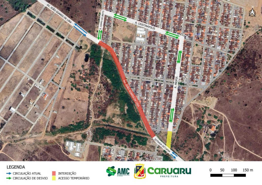 A partir da terça-feira (03), um trecho da Avenida João Soares de Lira será interditado temporariamente para a realização de uma obra, de acordo com comunicado divulgado pela A Autarquia de Mobilidade de Caruaru (AMC). Os condutores que chegarem à altura do trecho interditado poderão acessar um desvio disponível pelas ruas Propriá, Cristianápolis e Campo do Brito.
